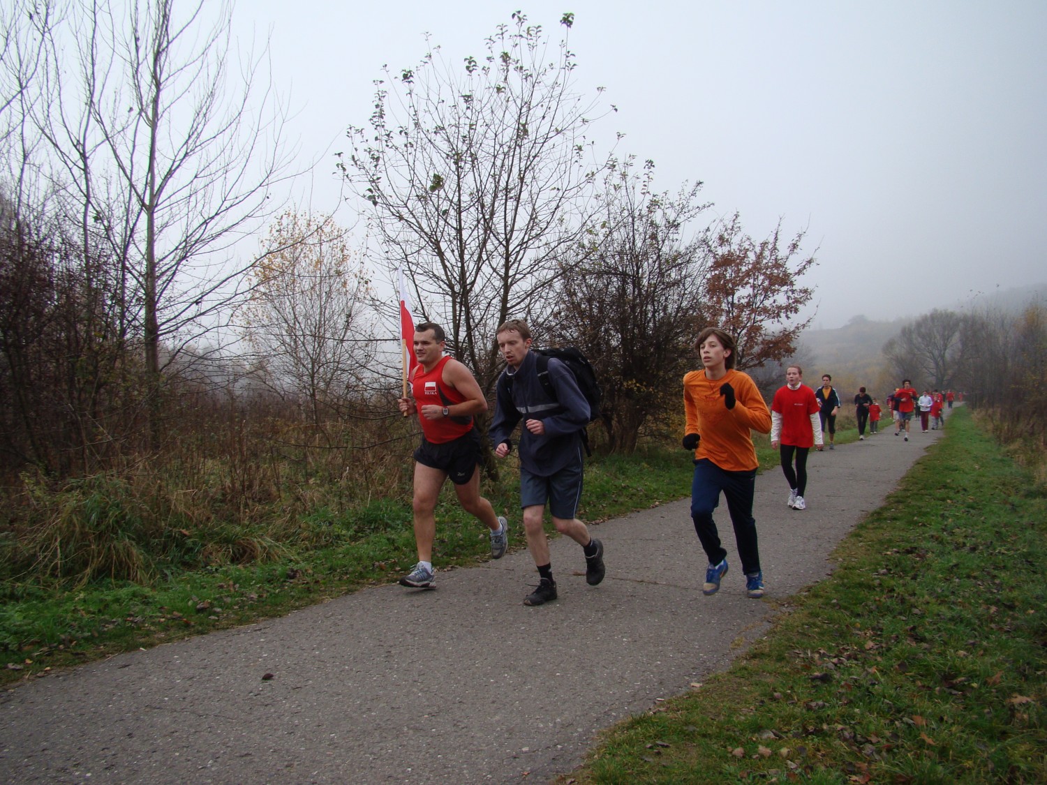 | Bieg Niepodległo¶ci, 08.11.2008. Kraków - bieg z Kopca Piłsudskiego na Kopiec Ko¶ciuszki (5 km). Zacz±łem ten bieg i skończyłem wraz z koleg± Maćkiem (vel: Mizzrym), który przyjechał parę minut przed biegiem i już miał nie startować (autobus z naszymi bagażami odjechał na metę...), miał ze sob± plecak z ciuchami ze studiów... Namówiłem go jednak, żeby pobiegł. Zgodził się... a więc, zaczęli¶my na samym końcu - ja biegłem z flag± Polski, a Maciek z plecakiem. :-D Mizzrym niestety miał bardzo ciężki plecak - pocieszałem go, że przynajmniej ma trening na maraton "Komandosa"! ;-] Podziwiałem go, bo walczył ambitnie z obci±żeniem, zwłaszcza gdy biegli¶my pod górkę. Od momentu startu do mety wyprzedzali¶my ludzi - widzieli¶my bardzo duże ilo¶ci dzieci i młodzieży (na zdjęciu). Bardzo klimatyczny i piękny bieg, z akcentem patriotycznym. Dziękuję Ciutkowi za fotki z biegu!
