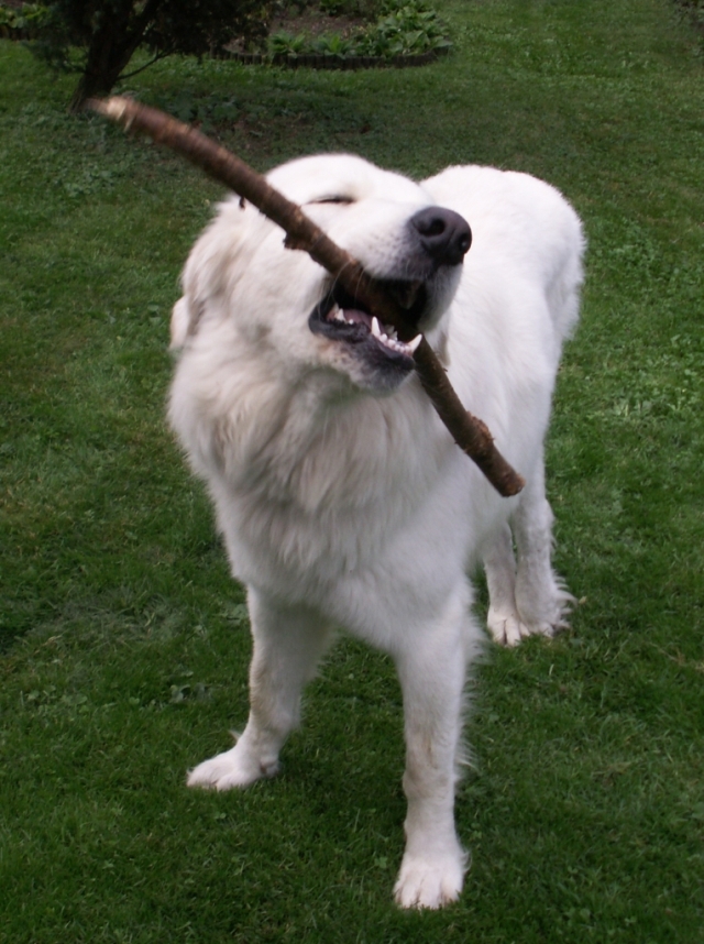 | Chociaż jak widać Kusy stoi tylko na 3 łapach (bo lewa tylna jest bezwładna) uwielbia bawić się i walczyć z kijem :)