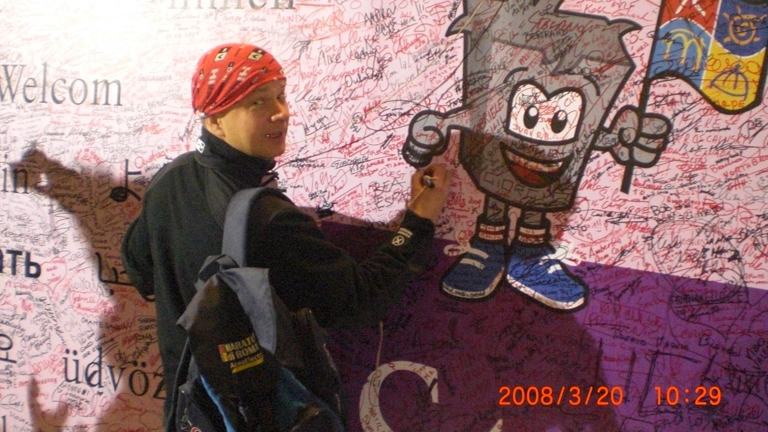 | W biurze zawodów była postawiona ogromna ¶ciana na której każdy maratończyk biegn±cy w rzymskim maratonie mógł złożyć swój własnoręczny podpis.