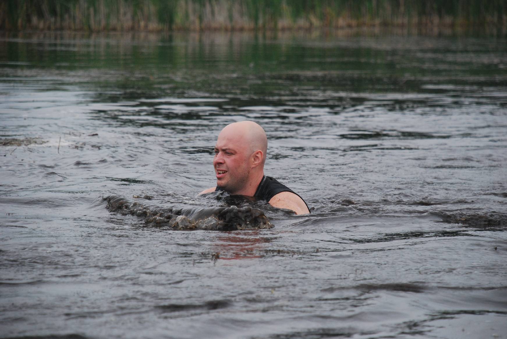 Brodzenie przez jezioro(?) Wydawać może sie że płynę, ale tak naprawdę woda sięgała niewiele powyżej pasa. Tak było po prostu szybciej.