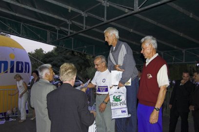 | Kłobuck 2006.Bieg szlakiem Jana Długosza.Na podium - upominki wręcza m.in. prof.Jerzy Buzek
