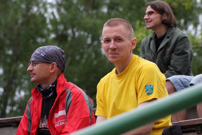 | Amfiteatr,po biegu. Z ArtkiemP na trybunach oczekujemy na losowanie nagród. Za chwilę sierotka wylosuje mi rakietkę do pingponga (yessss!) a Artkowi rower górski (phi!)