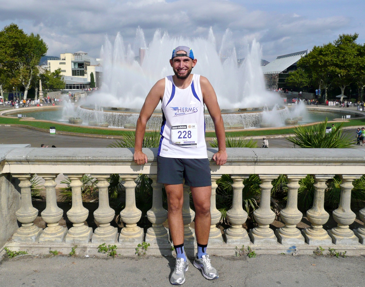 | Relaksik po biegu "Cursa de la Merce" w Barcelonie... W tle Fontanna Magica