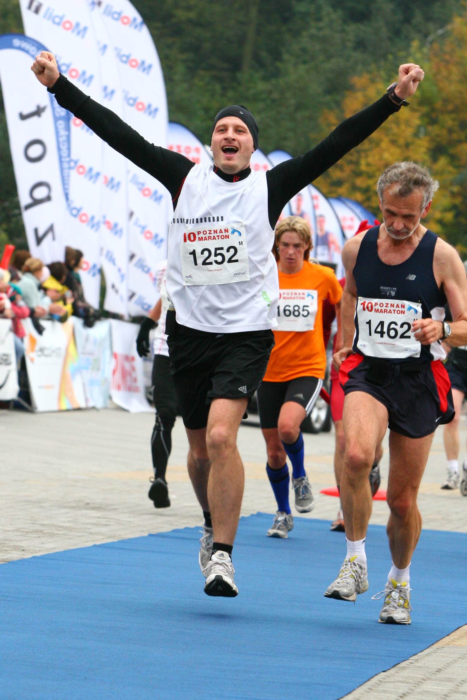 Skomentować zdjęcie moga tylko PRZYJACIELE czytelnika. tdrapella (2009-10-19,11:38): szczerze to nawet nie wiem czy go w końcu wyprzedziłem czy nie - nie miało to już dla mnie takiego znaczenia startMario (2009-10-20,10:38): No, Tomek gratulacje! Dobry wynik na debiucie, ja nabiegałem 3:44, ale co się dziwić wystrzeliłe¶ od samego startu jak z katapulty :)) golon (2009-10-20,10:52): gratki wyniku czyli cel zrealizowałe¶ bo pisałe¶ w artykule żeby poniżej 3h 40min nabiegać :D fajnie było pokibicować na trasie :-) tdrapella (2009-10-20,19:48): Mariusz, podejrzewam, że gdybym tak nie wystrzelił to by było bliżej 3:35 :) tdrapella (2009-10-20,19:50): Mateusz, następny cel to dogonić Wiecha :) - trzeba mieć ambitne cele by i treningi były odpowiednie :) Henryk W. (2009-10-21,06:51): Młody, zdrowy, trenuj±cy, nie będzie problemów z wyprzedzeniem "dziadka" Wiecha.:) tdrapella (2009-10-21,11:58): ja też się czuję zmotywowany :)))) Marass (2010-01-19,00:47): A propos o konkurencji - nie wiem czy wiesz, ale tuż za sob± miałe¶ NIESŁYCHANIE tward± zawodniczkę! tdrapella (2010-01-19,09:00): Nie, nie wiedziaem o tym. Ale taki czas dla kobiety mówi sam za siebie, musi być trawda. Żałuję, że tak mało zawodników znałem na trasie, choć od pewnego momentu już jakby nikogo nie widziałem... Gdzie¶ musiałem wyprzedzić po drodze Szmajchela, ale też go nie zauważyłem Rufi (2010-07-14,14:57): a z tyłu nie¶miertelna Agnieszka Mizera :) I oczywiscie gratuluje debiutu :) Ja może w tym roku. tdrapella (2010-07-14,15:13): Niestety nie znam tej dziewczyny :( Rufi (2010-07-14,16:26): najlepszy jest ten pan obok, tak jakby myslal: "jaka szkoda ze to juz koniec" :-))))