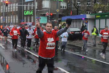 | To około 1 kilometra przed met±. Szczę¶liwy! Radosny Darek. Zawsze chętny by przybić pi±tkę z kibicami. Podziękować im oklaskami za doping. A......czas leci!! Ufff, udało się. Dyszka poniżej godziny.