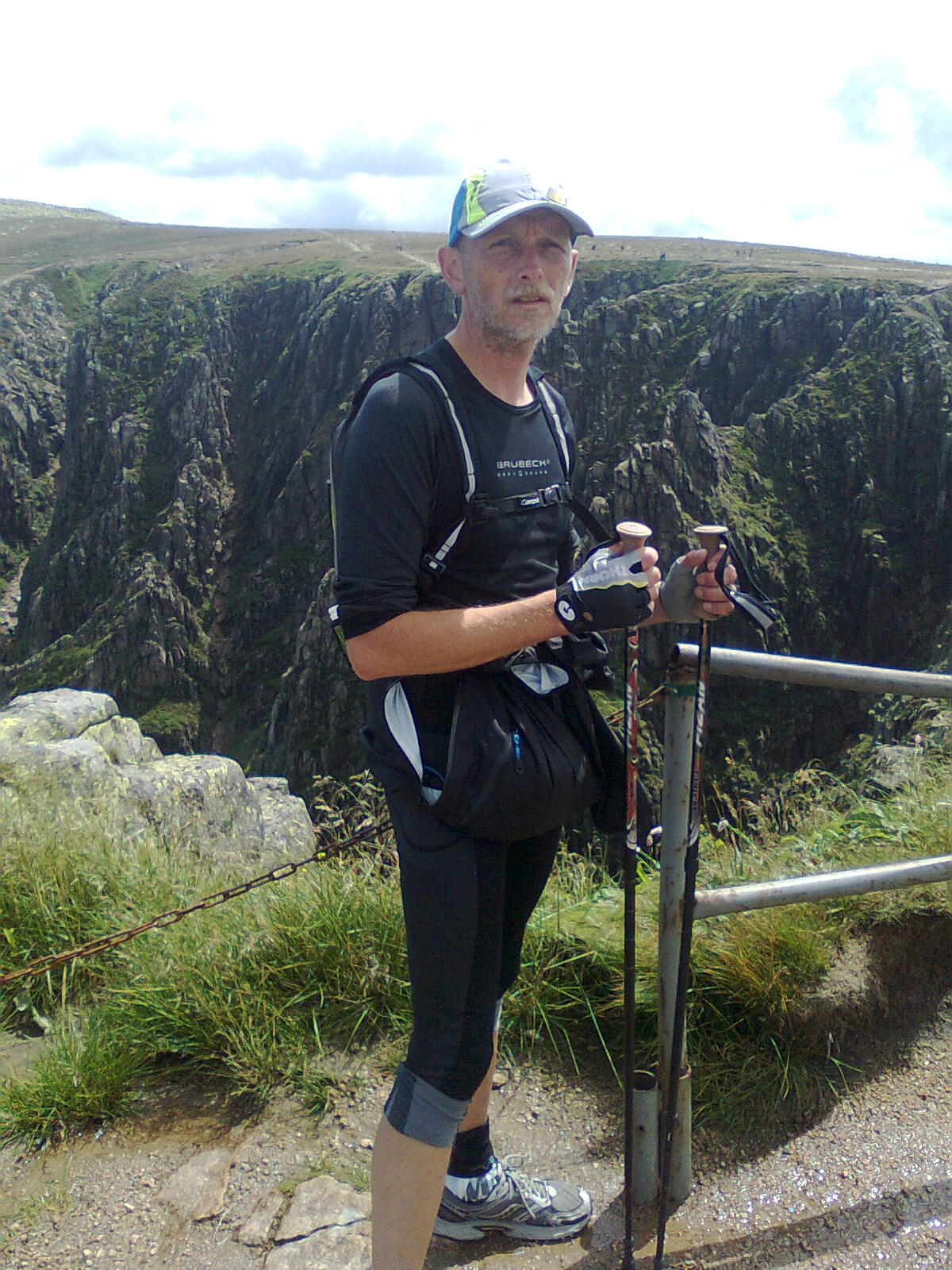 | Na trasie pierwszego górskiego maratonu. Na nogach worki foliowe ze względu na tzw. "warunki"...