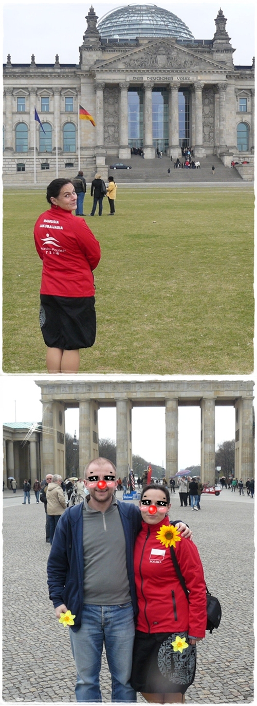 Skomentować zdjęcie moga tylko PRZYJACIELE czytelnika. Madzia71 (2010-04-19,13:03): Gabi była¶ na połówce?? w Berlinie?? mamusiajakubaijasia (2010-04-19,13:09): Nie, Madziu. Po prostu informacja o tym, że maraton w Dębnie się nie odbędzie zastała mnie rzut beretem od Berlina. Pobiegli¶my treningowo 13 km. Treningowo, ale za to przepiękn± tras±. Było warto:) borówka (2010-04-19,14:32): Super wygl±dacie :) Ale było zimno bo macie takie czerwone nochale :))))) golon (2010-04-19,15:19): Gaba ¶wietne fotki ! :) TREBI (2010-04-19,15:33): No to teraz Artystko czas na to aby Berlin zobaczyć z perspektywy biegaj±cej mamu¶ki:) mamusiajakubaijasia (2010-04-19,15:36): Biegałam, Królewiczu, uwierz:) Teraz czas zacz±ć zbierać na opłatę startow±:))))Berlin z perspektywy biegowej jest piękny. Hepatica (2010-04-20,09:21): Wygl±dacie szałowo!!!:))). No i wierzę, że dobrze Wam się biegało, bo was żadne służby porzadkowe nie zgarnęły:))). A my własnie dokonalismy opłaty za maraton w Berlinie i mam nadzieje, że już we wrzesniu tez poznam to miasto z perspektywy biegacza:)))