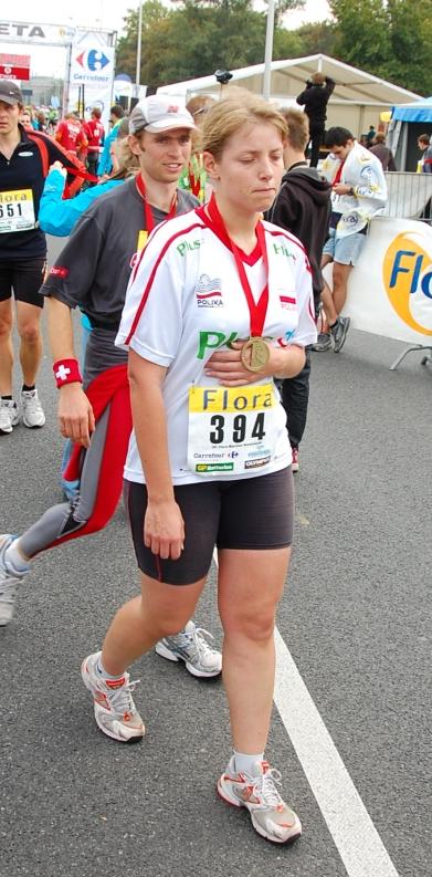 | Blada, półprzytomna, z gor±czk± trwaj±c± od trzech dni. I rozgoryczona. Z życiówk±, ale nie tak±. Zabrakło mi 3 minut do urwania pełnej godziny w maratonie w ci±gu roku. (Maraton Warszawski 2008)