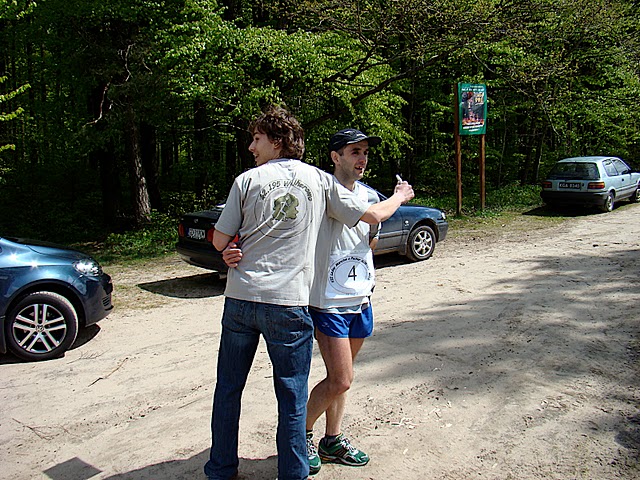 | Maraton Wejherowski 2010-16-05,na mecie z u¶cisk z sędzi± głównym zawodów Jackiem