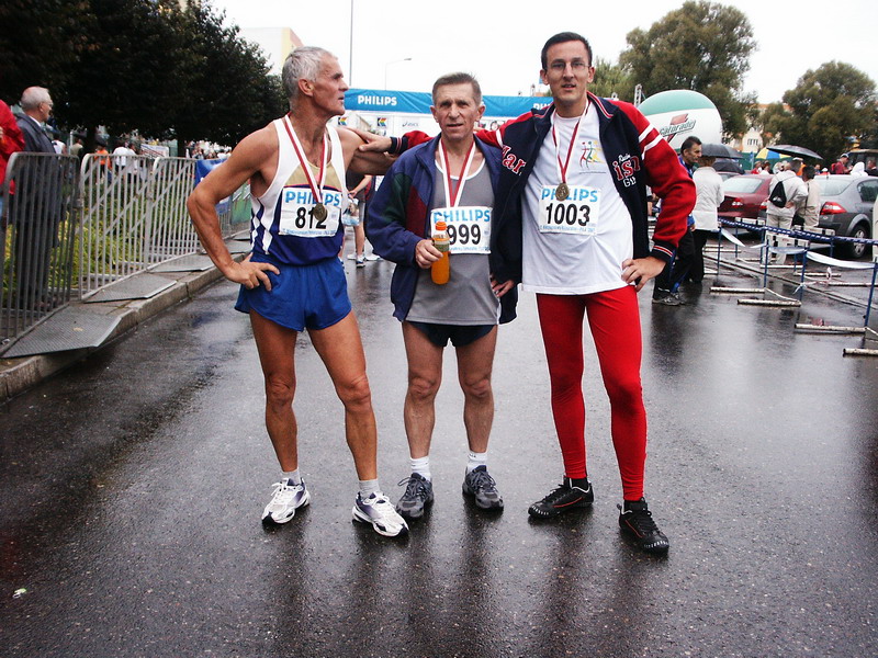 | 09.09.2007. Pami±tkowe zdjęcie na mecie Półmaratonu w Pile. Od lewej: Jan Zdrojewski, Zygmunt Draczyński, Marcin Horbacz.