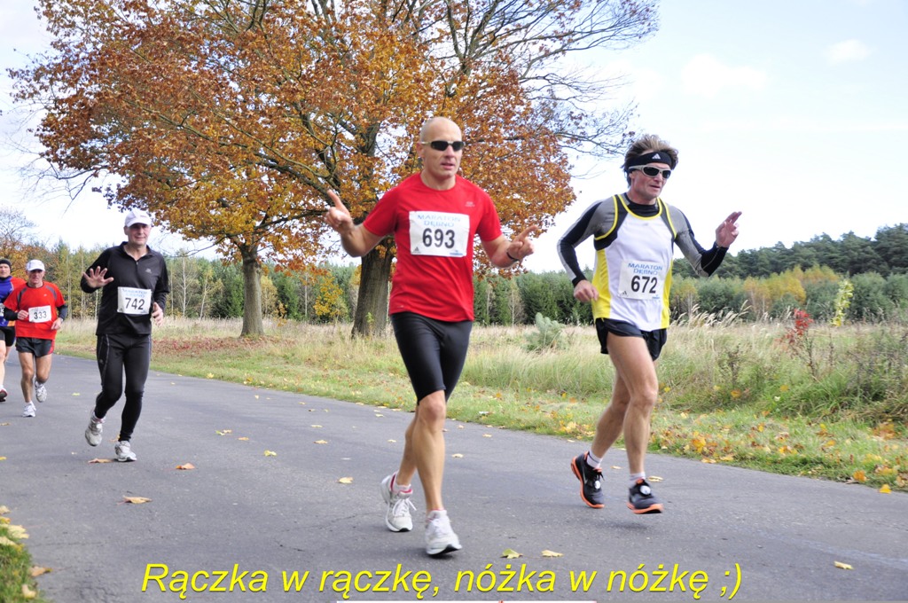 Skomentować zdjęcie moga tylko PRZYJACIELE czytelnika. shadoke (2010-10-28,18:36): To się nazywa zabrzański polonez, czy mazur może??? Jasiek (2010-10-28,18:39): Nieee... to jest górniczy walczyk! :) shadoke (2010-10-28,18:40): A my¶lałam, że szykujecie się do hołubców;)))) Jasiek (2010-10-28,18:41): Hołubce były na mecie! :))) shadoke (2010-10-28,18:42): Ale takie liche jakie¶, za mało wyskokowe;))) Jasiek (2010-10-28,18:45): Jakie drinki, takie hołubce! ;) shadoke (2010-10-28,18:50): Już od Warszawy próbuję Ci izotonik zast±pić czym¶ innym;))) a Ty uparcie odmawiasz;))) Jasiek (2010-10-28,19:05): Na warszawskich izotonikach, to mógłbym tutaj wycinać hołubce, ale w toi-toiu! ;) Ewka (2010-10-28,19:34): Ja stawiam na salsę, krok podstawowy, bo i maraton "podstwowy". Gulunek (2010-10-28,21:08): Makarena od razu widać :) zgrzecho (2010-10-28,21:12): ależ oni wszyscy tanecznym krokiem biegn±, szkoda że w mojej grupie biegli zwykłym krokiem Jasiek (2010-10-28,21:13): No to nas Mareczek rozpracował strzałem w dziesi±tkę! :))) shadoke (2010-10-28,21:57): Kolega z tyłu nie¶miało próbuje się przył±czyć;))) Jasiek (2010-10-28,22:02): Ten pan w czarnej piżamce?... Nie, on tylko szykuje się do przybicia pi±tki ;) Kedar Letre (2010-10-28,22:10): Ten pan w czerwonej koszulce pyta: - Do Dębna w prawo czy prosto? - Prosto, prosto - wskazuje Jasiek....
