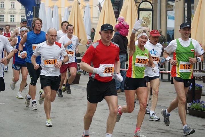 | 17.04.2011r - X Cracovia Maraton - na rynku gębula jeszcze u¶miechnięta,ale rękawiczkę mam ładniejsz± niż kolega z boku prawda..... :D