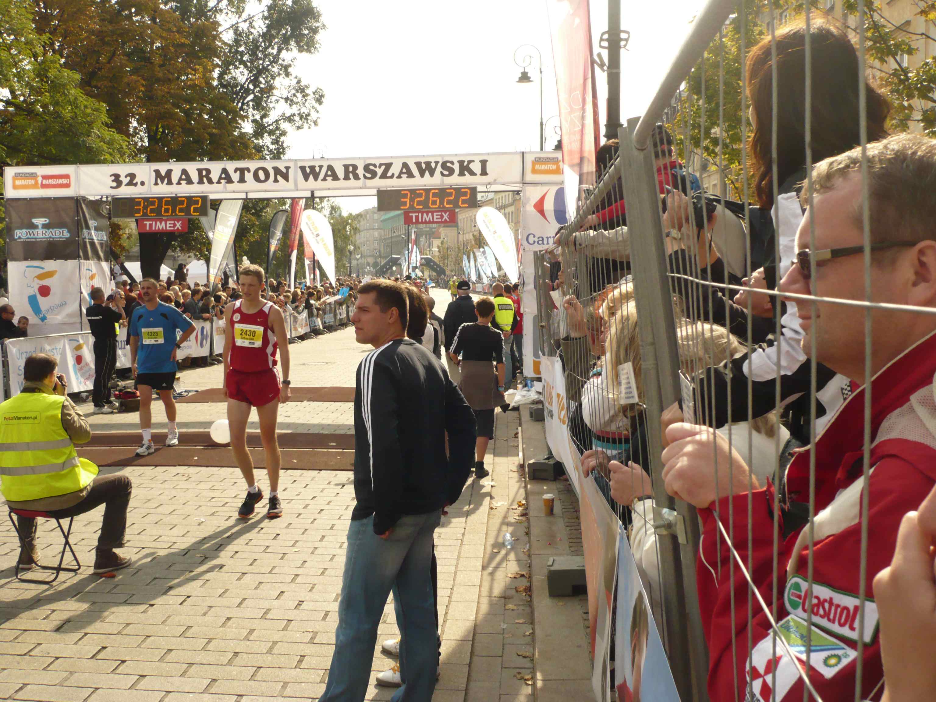 | na mecie pierwszego ukończonego maratonu- Warszawa 2010