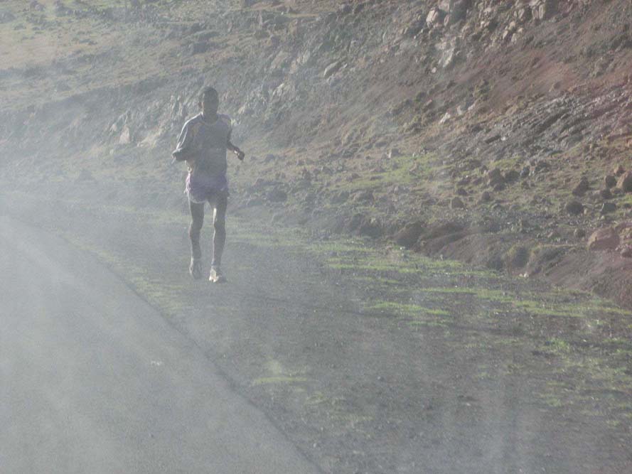 | Kwiecien 2007. Bieganie w Etiopii, wysokosc okolo 2500 m.n.p.m, na polnoc od Addis Ababy, godzina +/- 7.00. Zdjecia niestety z samochodu.