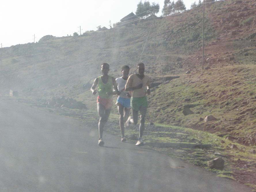 | Kwiecien 2007. Bieganie w Etiopii, wysokosc okolo 2500 m.n.p.m, na polnoc od Addis Ababy, godzina +/- 7.00. Zdjecia niestety z samochodu.