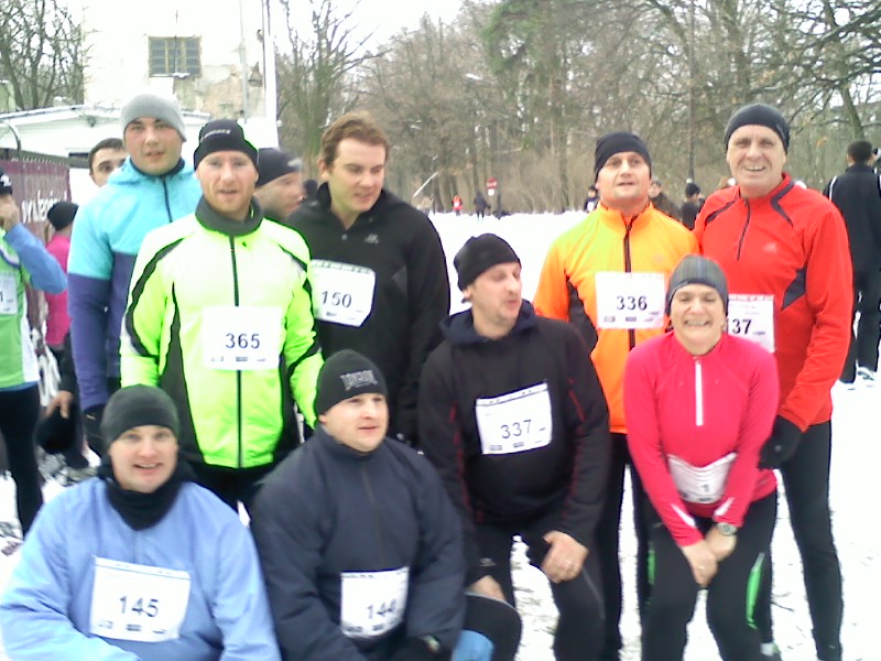 | Reprezentacja Drużyny ŁódĽ Maratonu Dbam o Zdrowie podczas II biegu z cyklu Grand Prix Łodzi - 15 stycznia 2012 roku.