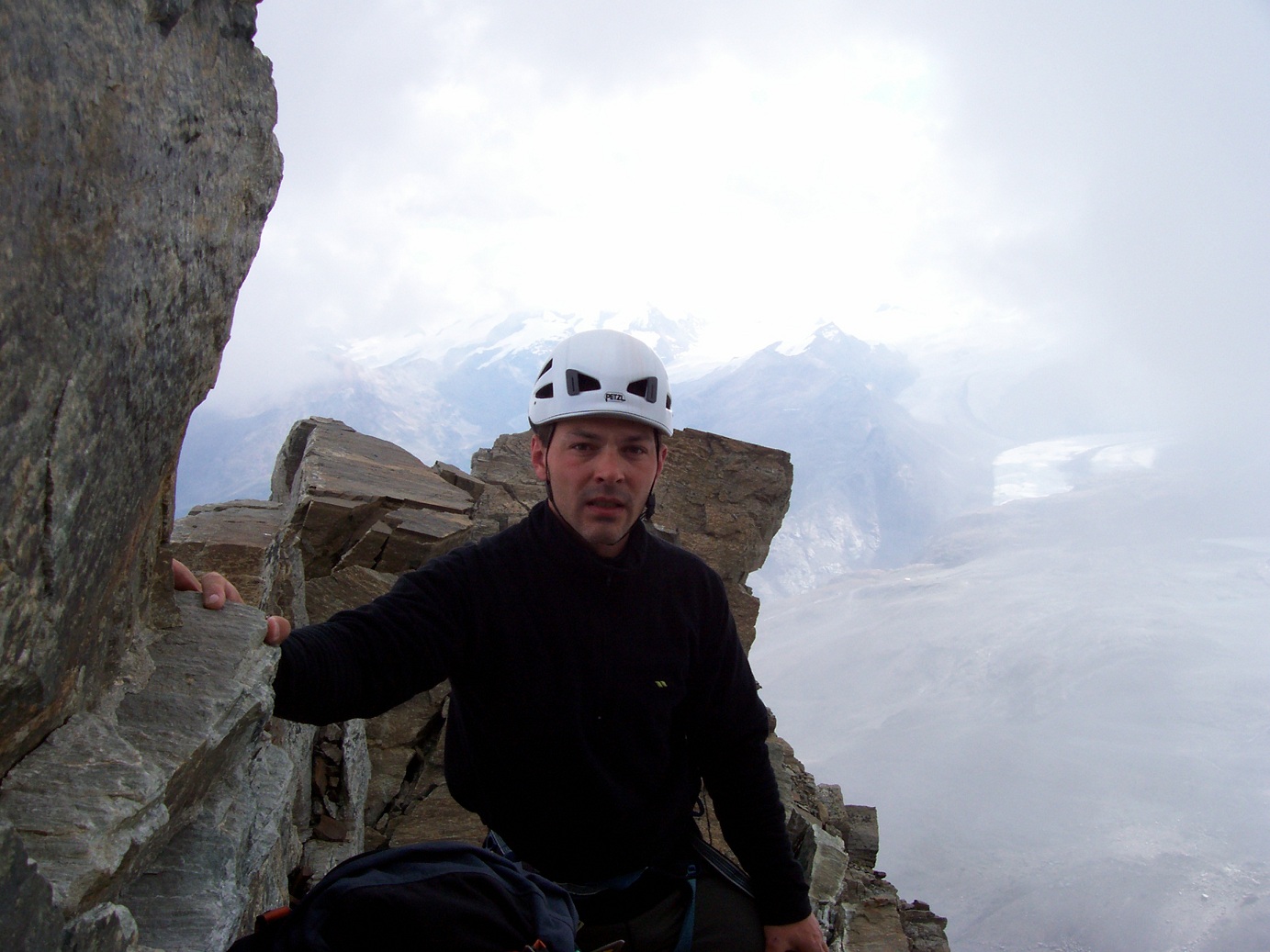 | Matterhorn 2007r. - nie udało mi się zdobyć szczytu z powodu braku dobrej pogody :-( Na zdjęciu najwyższy punkt, jaki samotnie osi±gn±łem przed burz±.