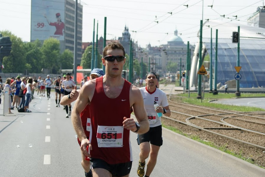 | 3 maj 2012 - Maraton Silesia. Osi±gn±łem półmetek (okolice ronda i spodek w Katowicach)... a za chwilę odcięło mnie zupełnie od zasilania i wła¶ciwie to był koniec maratonu, a zaczęło się poooowolne czołganie do mety w pięknym Parku w Chorzowie:(