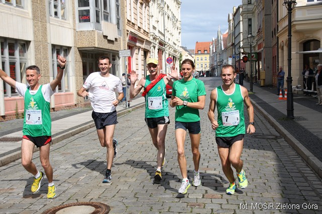 | 20120714 - XX Bieg sztafetowy od Ratusza do Ratusza (Zielona Góra - Cottbus) - wesoły finisz wesołej ekipy na rynku w Cottbus