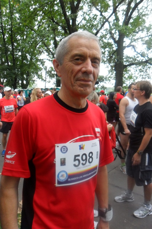 Tuż przed startem do pierwszego maratonu, ukończonego w czasie 5:30:14. Wrocław 16.09.2012