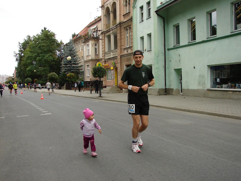 Pierwszy wspólny bieg. Martynka przebiegła na rozgrzewce ponad 200m wzbudzaj±c sympatię u wielu biegaczy oraz gromki aplauz wsród miejscowych żuli zebranych pod sklepem spożywczym