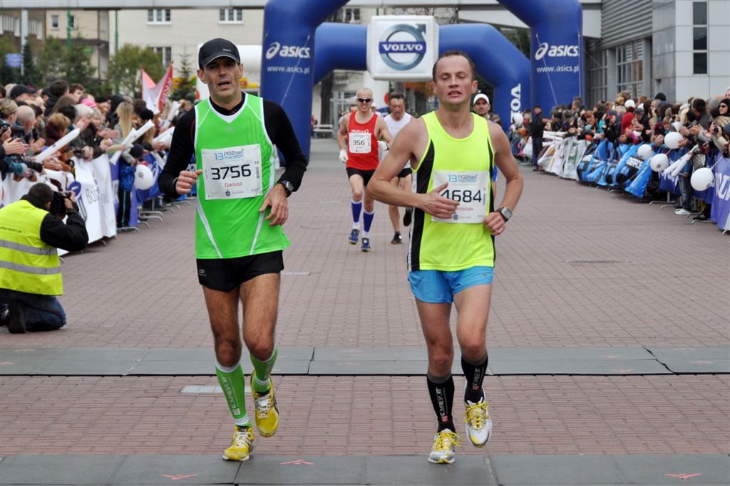| Bieganie synchroniczne!!! Wła¶nie przekraczamy z Darkiem metę Poznańskiego Maratonu ;)) Poznań, 14.10.2012.