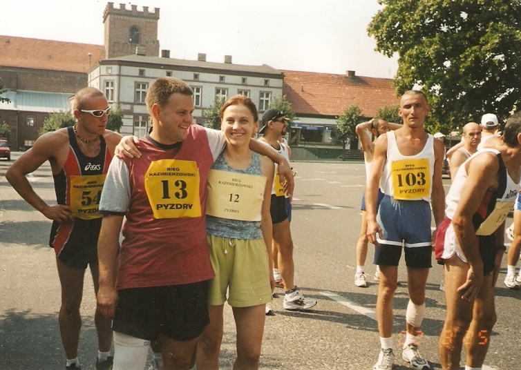 | Razem z żon± Krysi± przed startem do Biegu Kazimierzowskiego na 5 i 15 km.Pyzdry 2002r.