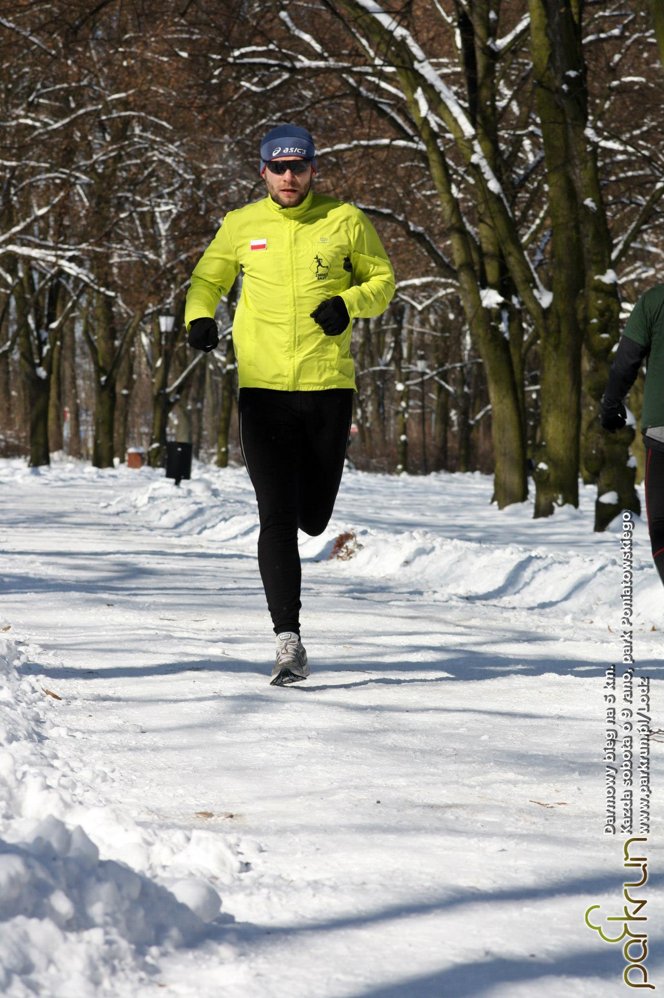 | Zimowe bieganie w kwietniu. Parkrun ŁódĽ, 8.04.2013, Park Poniatowskiego