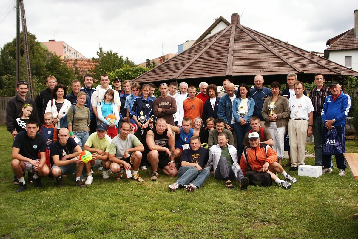 | 24 VIII 2008. Uczestnicy III biegu Grand Prix Łobza po dekoracji i losowaniu nagród.