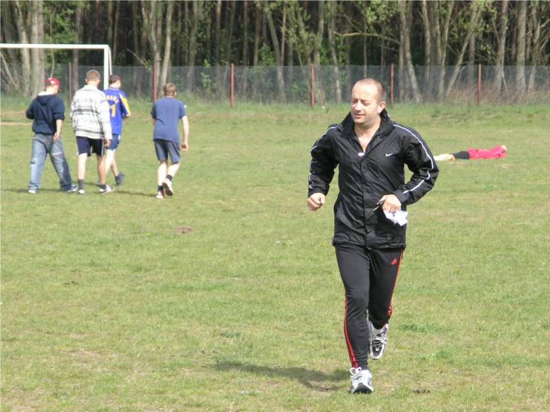 | Gródek, maj 2006, wspaniała, młodzieńcza, wysportowana sylwetka zawodnika powoduje podziw i lęk u przeciwników - w tle jeden z zawodników leż±cy na trawie - skoszony na sam± my¶l o trudach rywalizacji z tak doskonale przygotowanym rywalem !