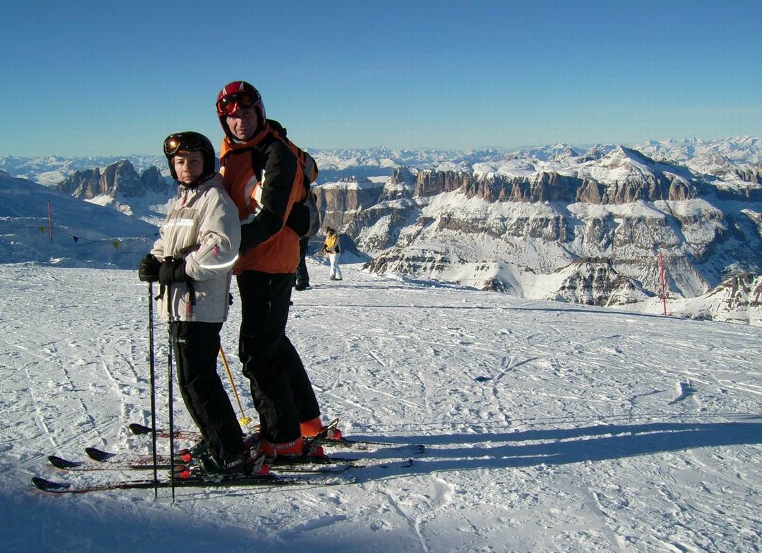 | Italia, na szczycie lodowca Marmolada (3400mnpm), widok na Sella Ronda. Styczeń 2007.