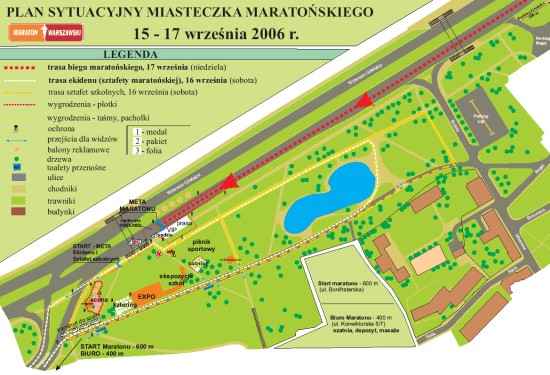 Do rozpoczęcia Warszawskiego Festiwalu Biegowe pozostały już tylko trzy dni. Mamy nadzieję, że tegoroczna impreza będzie pod każdym względem rekordowa, a przede wszystkim jeszcze lepsza organizacyjnie. Wszystkim biegaczom życzymy pobicia rekordów życiowych, a kibicom wyśmienitej zabawy. Poniżej prezentujemy Wam mapy sytuacyjne startu 28. Flora Maratonu Warszawskiego oraz miasteczka maratońskiego na Podzamczu (okolice mety).