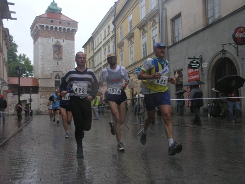Lubię Kraków. Jakbym go nie lubił to bym tu nie przyjeżdżał. To był mój 6 maraton krakowski i debiut mojej żony na tej trasie. Jak co roku organizatorzy coś pomajstrowali przy trasie co miało przyspieszyć trasę. Hm chyba nie do końca wyszło. W sumie trasa bez większych trudności, ale w Krakowie ciężko się biega i każdy kto nastawia się tu na rekordowe osiągnięcia musi się liczyć z ryzykiem "ściany". Nie wiem czym jest to spowodowane, być może to specyficzny mikroklimat? Nie wiem. Mi się w Krakowie ciężko biega, co nie zmienia faktu, że robię to z przyjemnością.