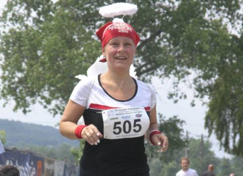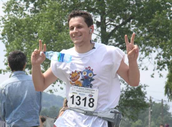 Do którego kilometra starczy paliwa zastanawiam się? Początek z górki, ale z powrotem będzie pod. Od 17km do 19 km będzie chwila prawdy. Trzeba pomyśleć by zostawić trochę sił na ten odcinek. Postanawiam na zbiegach nie szaleć co robią koledzy z mojego przedziału. Jestem spokojny. W duchu mówię sobie poczekamy, zobaczymy koledzy co z Wami będzie na 17 km. I jak przewidziałem. Tam doszedł mnie Damek z kolegą, a ja rozprawiłem się z większą grupą moich rywali z mojej półki. Szkoda tylko, że nie dogoniłem Artura Bulki z Krakowa i kolegi z Łodzi. Ale byli blisko w zasięgu ręki. W przyszłym roku rewanż.