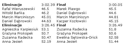 Rys.1 - międzyczasy sztafet 4x400m w Osace