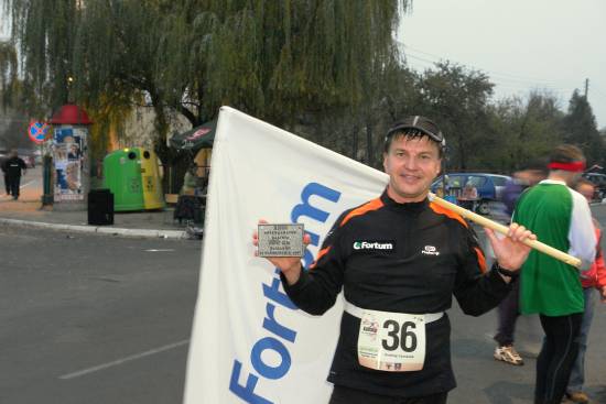Śniadanko w postaci bananów popijanych napojem izo i załadowanie do samochodziku ciuchów na zmianę, żelów energetycznych i w dłoni aparat fotograficzny. Zajechałem do ryneczku w Stawiszynie. Czekaliśmy z innymi biegaczami na przyjazd autobusów z Blizanowa z zawodnikami.