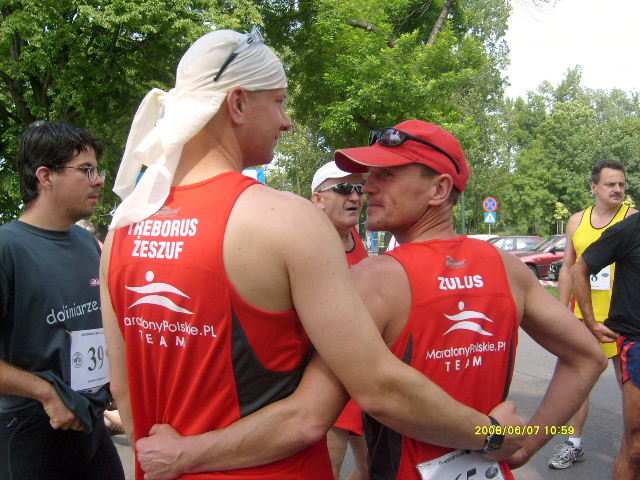 Spałem dość głęboko i wstałem dobrze wyspany. Temperatura na dworze nie była wysoka, a słońce wyglądało za chmur. Pogoda na czas biegu była raczej łaskawa dla uczestników - prognoza: w ciągu dnia około 20°C, w nocy 10°C, lecz z możliwością przelotnych opadów deszczu. Po śniadaniu krótkie przygotowanie i byłem gotowy do startu. Osobiście gorączkę przed startową nie odczuwałem , gdyż już brałem w takich imprezach udział, a mój start w nim był ukierunkowany więcej na ukończenie niż na rekord życiowy, choć on sam nie był do końca z moich planów wykluczony.