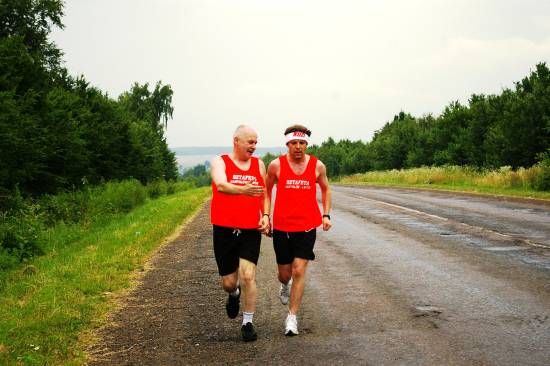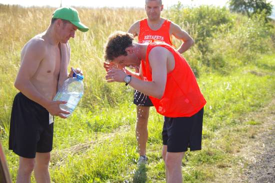 W tym roku, gdy pierwsza grupa wybiegała z Namysłowa to druga jechała na swoje miejsce startu 160 km dalej do Kozichgłów, a trzecia kolejne 160 km do Tarnowa, skąd zmierzała biegiem do Przemyśla. Tam w miejscowej komendzie straży pożarnej czekał na nas nocleg, na który pozostałe dwie ekipy dojechały busami mając już w nogach pokonane przez siebie biegiem odcinki. Nie ma, więc przekazywania pałeczki sztafetowej i nawet w ramach jednego busa zmiany najczęściej dokonujemy na tzw. zakładkę. To znaczy, gdy ja biegnę – to bus m. in. z Józefem Marko, który będzie biegł po mnie jedzie 5 km, staje i wypuszcza go, a czeka na mnie. Dobiegam, ruszamy, po drodze wyprzedzamy Józka, jedziemy i po kolejnych 5 kilometrach znów stajemy, a na trasę rusza młody namysłowianin Arek. Dodajmy, że trzy komplety okolicznościowych koszulek i spodenki oraz czapeczka pozwalają na dopasowanie stroju do warunków pogodowych i przebierać się na uroczyste fragmenty biegów w nasze piękne, zielone polówki.