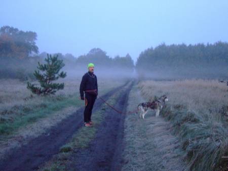 Moja Szara na spacerach biega luzem, ale ja już nad nią jako tako panuję. Ale wielu właścicieli huskich ma z tym problem. Te psy, zwłaszcza jak mają za mało ruchu, mają tendencję do ucieczek. Na przykład Nuka, którą czasem pożyczam od właścicielki żeby przegonić ją po lesie. Już kilka razy ją ścigałem przez pół godziny albo i godzinę i na sekundę jej już luzem nie puszczę. Ale za to jest to rasa całkowicie nieagresywna wobec ludzi i można bez ryzyka ataku na człowieka puścić psa luzem. Ale zdarzają się przechodnie, którzy o tym nie wiedzą i mnie opieprzają, że psa luzem puszczam. Na szczęście coraz rzadziej, bo Szarą już cała okolica kojarzy, że pies jest spokojny. Kończę, rodzina się wkurza, bo chce spać...