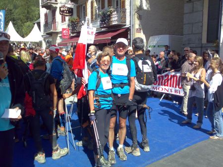 Na mecie w Chamonix czekali już koledzy, którzy wcześniej pokonali trasę: Wiesiu Prozorowski (19:30), Paweł Banaszak (23:24) i Paweł Droździk, kolega maratończyk z Nysy (21:18); Magda i Jarek Dawidziak ukończyli swoją przygodę z Mount Blanc w Champex-Lac na 55 km.
