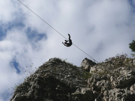 Metoda pokonywania odcinków terenu pozbawionego wystarczającej rzeźby, w szczególności przepaści, wąwozów i studni w jaskiniach za pomocą podpięcia wspinacza w uprzęży do wstępnie napiętej liny nośnej rozpiętej między dwoma stanowiskami położonymi w przybliżeniu na jednakowej bądź różnej wysokości.”(Wikipedia).