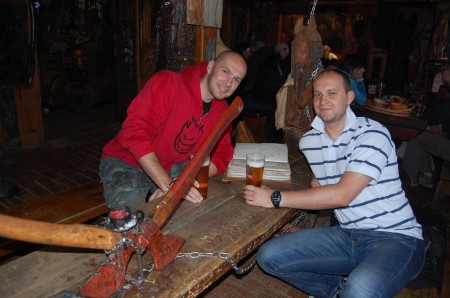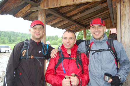 Poranek 3 czerwca - nie rozczarował nas - padało od rana. Barowa pogoda. Nie trzeba było długo czekać jak znaleźliśmy się w popularnej w Cisnej - Siekierezadzie. W drodze powrotnej udaliśmy się do Biura Zawodów i w tłumie innych kandydatów na Rzeźników odebraliśmy pakiety startowe. Wieczorem na kwaterze zameldowała się kolejna ekipa - Sabotage Squad w osobach Pawła i Karola oraz Tatiany. Na zakończenie dnia udaliśmy się jeszcze na odprawę przed startową. Niestety pomieszczenie było tak wypełnione ekipami, że z trudem udało się nam oddać worki na przepaki. Zadowoliliśmy się więc najważniejszą informacją, którą uzyskaliśmy od Maćka (AC Warszawiaky) z której jasno wynikało, że autobusy na start ruszają o 02:15 z Cisnej.