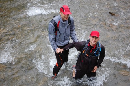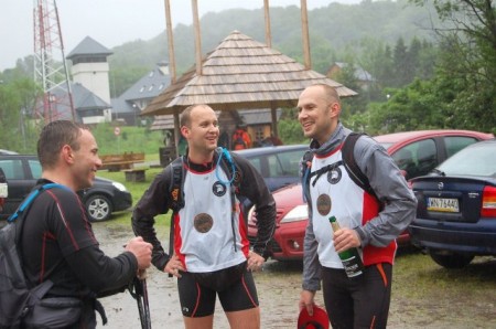 Rozpierająca nas energia zaprowadziła nas do Wołosatego (potok) w którym zanurzeni po pas spłukaliśmy pierwszą warstwę błota i sporą część zmęczenia. Uśmiechy nie schodziły nam z twarzy. Oskar dostał medal i oświadczył, że już długo by nie pociągnął tego zbiegu - no w końcu - bo myślałem, że jest niezniszczalny. Przebraliśmy się w suche ciuchy i z kanapką oraz piwem w ręku czekaliśmy na pojawienie się Sabotage Squad. Niestety Andrzeja z Entre.pl nie dopadliśmy, zabrakło nam mniej niż 5 minut (14:55:09 i 68 miejsce). Wyścig zakończyliśmy z czasem 14:59:19 zajmując ostatecznie 72 miejsce na 99 drużyn, które ukończyły bieg. Paweł z Karolem osiągnęli metę w czasie 15:25:08 na 92 miejscu. Asia z Warszawiaky dotarła ostatecznie razem z Piotrem w czasie 15:38:29 plasując się na 94 miejscu. W bardziej niż fantastycznych nastrojach udaliśmy się na kwaterę.