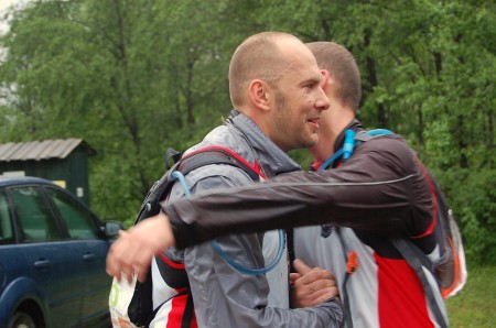 Wiedziałem, że przed nami jeszcze jedna przerwa, nie założymy przecież koszulek klubowych w pełnym biegu. Przerwa nie była tak długa jakbym tego sobie życzył. Mięśnie jednak napędzała już chyba tylko czysta adrenalina. Moc na tym odcinku była z nami. Na ostatnim trawiastym zbiegu noga się poddała i złożyła, zrobiłem mały przewrót ale chwilę później już biegliśmy dalej. Jedna z wyprzedzonych ekip pokazała się na szczycie ostatniego zbiegu. My byliśmy już na dole i do pokonania było około 200 metrów. Końcówka to już pełna ułańska fantazja. Podbiegliśmy nawet pod ostatnie schody. Na mecie poczuliśmy się jak kierowcy Formuły 1. Marta z szampanem, Małgosia z aparatem, medal i gratulacje od organizatorów. W tej chwili byliśmy w niebie dla biegaczy.