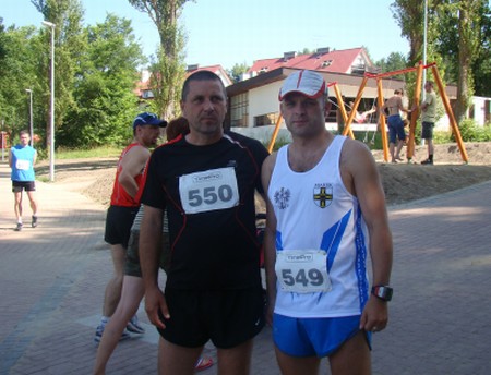 Pragnę jeszcze wspomnieć o ciekawym zdarzeniu chyba najbardziej obrazującym ten niesamowity dzień. Podczas naszej stacjonarnej rozgrzewki jeden z biegaczy obok rozmawiał przez telefon. Nagle niespodziewanie zwraca się do nas z ze zdziwieniem i zakłopotaniem – Przepraszam czy Panowie też tutaj biegają? Tak odpowiadamy zdziwieni jego niezbyt mądrym pytaniem zważywszy na nasze stroje, przygotowaną wodę i odparowujący stres startowy.