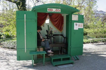 Po przecięciu skrzyżowania z ulicą Piękną przez kilkaset metrów, aż do placu na Rozdrożu, trasa tegorocznego maratonu będzie wiodła wzdłuż Parku Ujazdowskiego gdzie można zobaczyć pomnik Ignacego Jana Paderewskiego, a także, myślę ze ta informacja będzie szczególnie cenna dla uczestników maratonu, którzy chcieliby się dowiedzieć po biegu ile kilogramów zostawili na trasie, zabytkowa, bo pochodząca z 1912 roku aczkolwiek funkcjonująca do dziś waga. Jest to duży, skórzany, wypunktowany mosiężnymi gwoździami fotel ustawiony w środku zielonej, drewnianej budki. Jej skala kończy się na 149 kilogramach i 99 dekagramach.