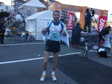 Mój końcowy wynik to równe 1:47:00 godz. Na mecie byłem bardzo zadowolony, nie tylko z miejsca, ale i z tempa biegu, które było praktycznie rosnące od startu do mety, bez najmniejszego kryzysu. A właśnie obawiając się jego gdzieś za 30 km zrezygnowałem ze startu na pełnym maratońskim dystansie. Obawy te moje były "podparte" tegorocznymi niezłymi startami na dystansie półmaratońskim (brązowy medal w Mistrzostwach Polski w biegu pustynnym na tym dystansie, niezły start w 1.Półmaratonie Opolskim na wynik ok. 1:20 godz. no i bardzo dobre – 15 miejsce w Mistrzostwach Polski w Pile z wynikiem poniżej 1:20 godz.). Maratonu w tym roku dobrze nie pobiegłem (bo 3:04 godz. w Maratonie Ostrowskim nie można uznać za sukces ) i dlatego w Japonii z niego zrezygnowałem nie chcąc ryzykować jakimś "blamażem", a tym samym zawodem dla wielu pomagających mi w tym wyjeździe osób.