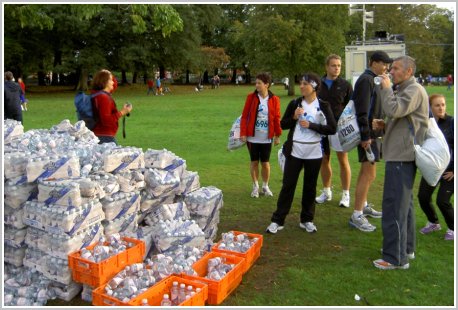 Z hotelu wyjazd do centrum miasta, gdzie wg broszury dostarczonej wraz z numerem startowym, należy odebrać worek na rzeczy do depozytu. Znajdujemy zwykły sklep sportowy, gdzie każdy dostaje pusty, plastikowy worek. To wszystko. Na drugi dzień (sobota) w luksusowym hotelu Hilton (jeden ze sponsorów maratonu) w małym pokoiku na piętrze, to samo – bierzemy drugi plastikowy worek. A co!