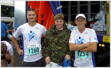 Worki leżą na trawniku na ogrodzonym placyku, pdają je sprawnie młodzi żołnierze. Zaczyna padać intensywna mżawka; szkoda, że nie ma namiotów jakie oferuje np. krakowski maraton.