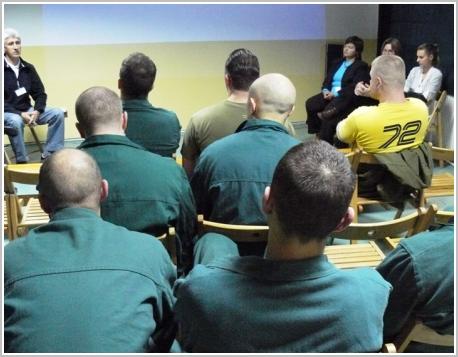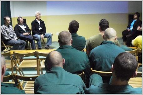 Ciężar powitania i przedstawienia nas kilkunastoosobowej grupie osadzonych, a także krótkiego zaprezentowania idei naszego stowarzyszenia oraz celu, dla którego tutaj przybyliśmy, wziął na siebie Jarek, i jak przystało na prezesa, udźwignął go bez zająknięcia.